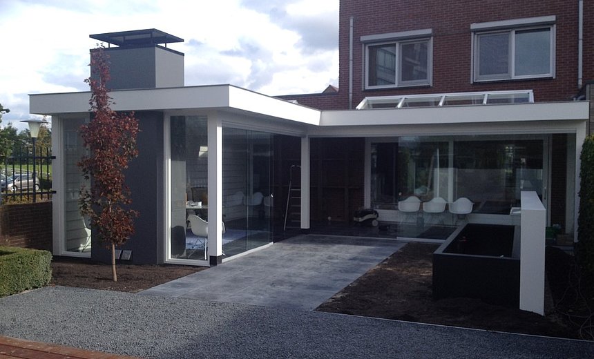 Veranda over kaping gebouwd door Aannemer van Meijeren te krimpen aan den IJssel. Ontwerp en uitwerking door Artoi maatwerk. Robuuste meubels gemaakt van eiken wagondelen door Artoi.